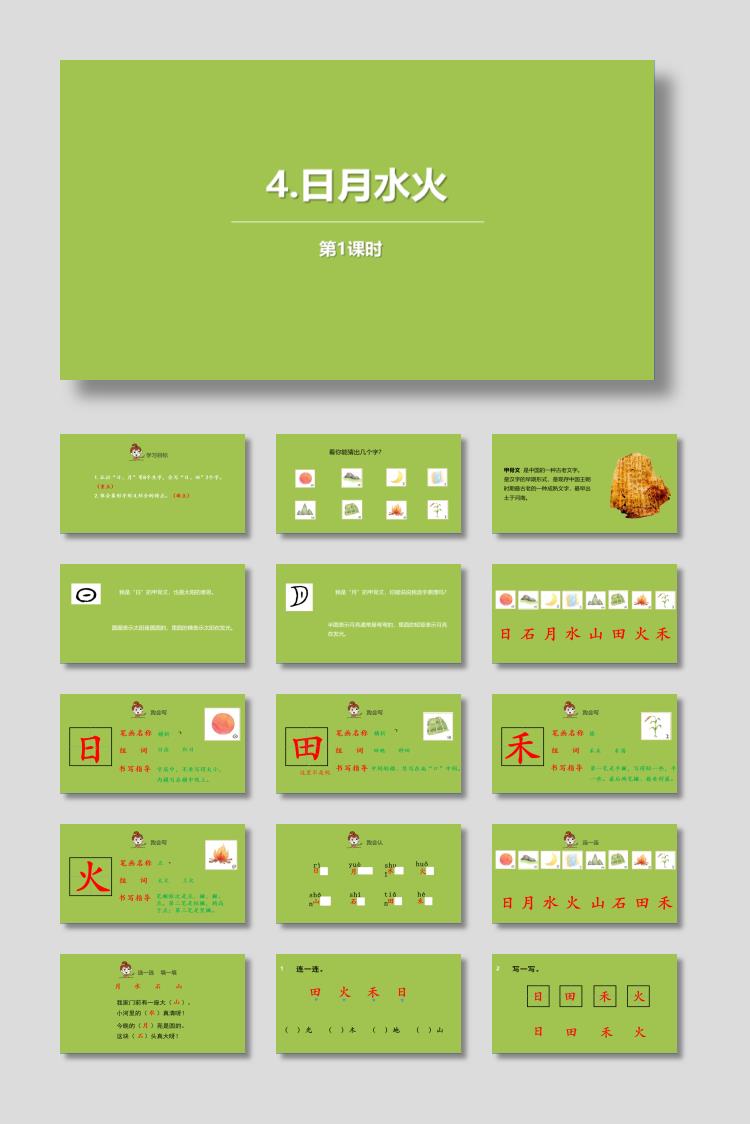 日月水火PPT课件课文第1课时下载到电脑里面,请使用Microsoft Office 2010或wps2016以上版本 等相关软件打开,作品中主体文字及图片、音频、视频可替换修改,文字修改可直接点击文本框进行编辑,图片更改可选中图片后单击鼠标右键选择更换图片,也可根据自身需求增加和删除作品中的内容文本。
