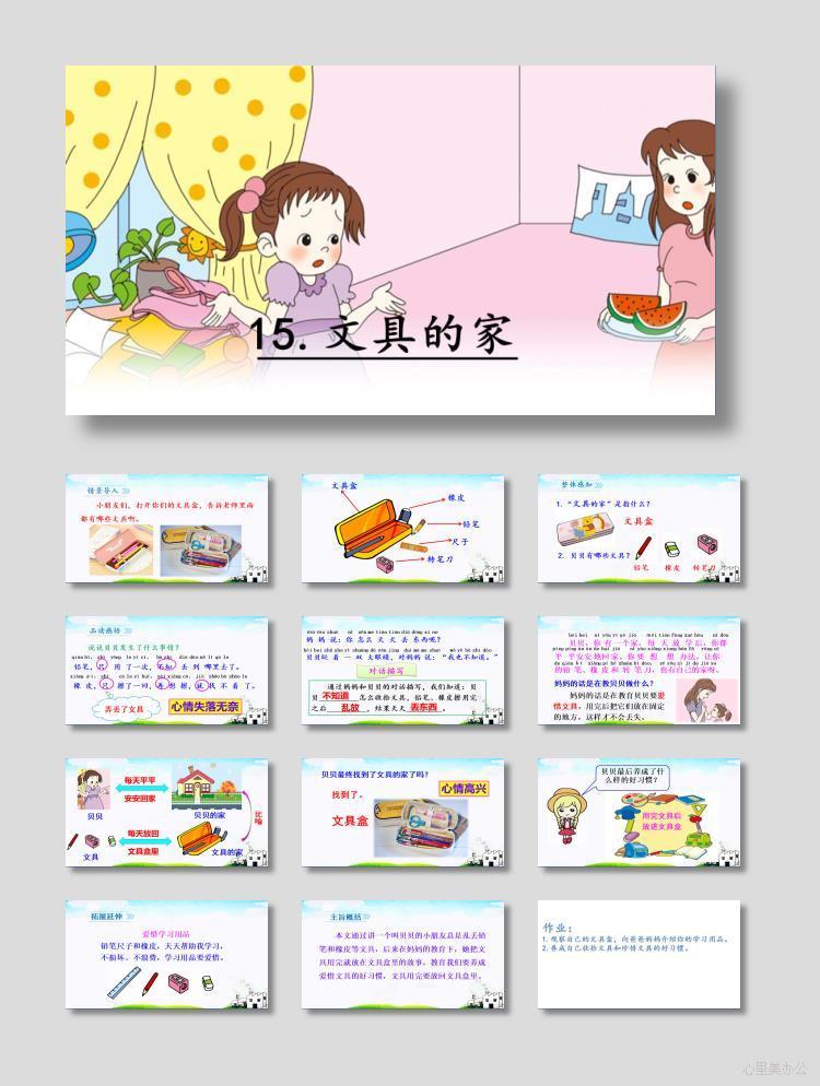 文具的家PPT课件下载下载到电脑里面,请使用Microsoft Office 2010或wps2016以上版本 等相关软件打开,作品中主体文字及图片、音频、视频可替换修改,文字修改可直接点击文本框进行编辑,图片更改可选中图片后单击鼠标右键选择更换图片,也可根据自身需求增加和删除作品中的内容文本。
