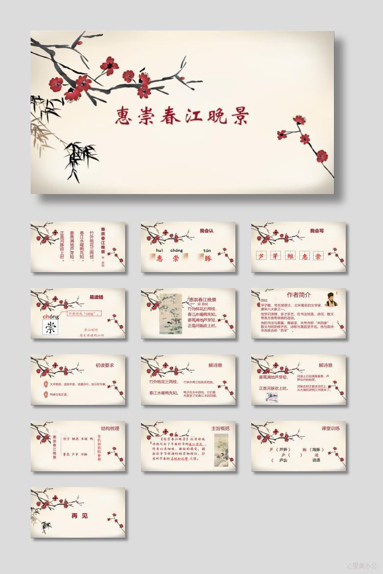 惠崇春江晚景古诗三首PPT教学课件下载到电脑里面,请使用Microsoft Office 2010或wps2016以上版本 等相关软件打开,作品中主体文字及图片、音频、视频可替换修改,文字修改可直接点击文本框进行编辑,图片更改可选中图片后单击鼠标右键选择更换图片,也可根据自身需求增加和删除作品中的内容文本。
