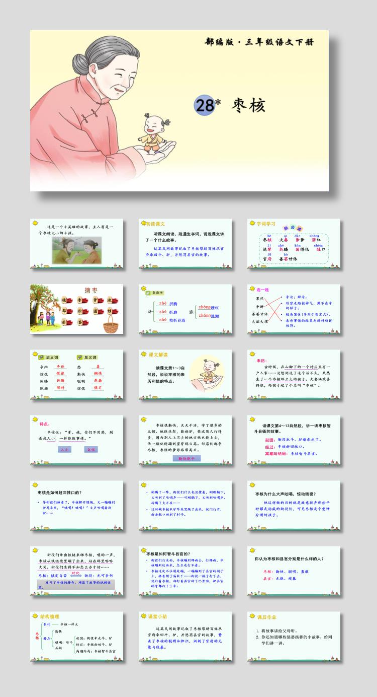 枣核PPT教学课件下载到电脑里面,请使用Microsoft Office 2010或wps2016以上版本 等相关软件打开,作品中主体文字及图片、音频、视频可替换修改,文字修改可直接点击文本框进行编辑,图片更改可选中图片后单击鼠标右键选择更换图片,也可根据自身需求增加和删除作品中的内容文本。