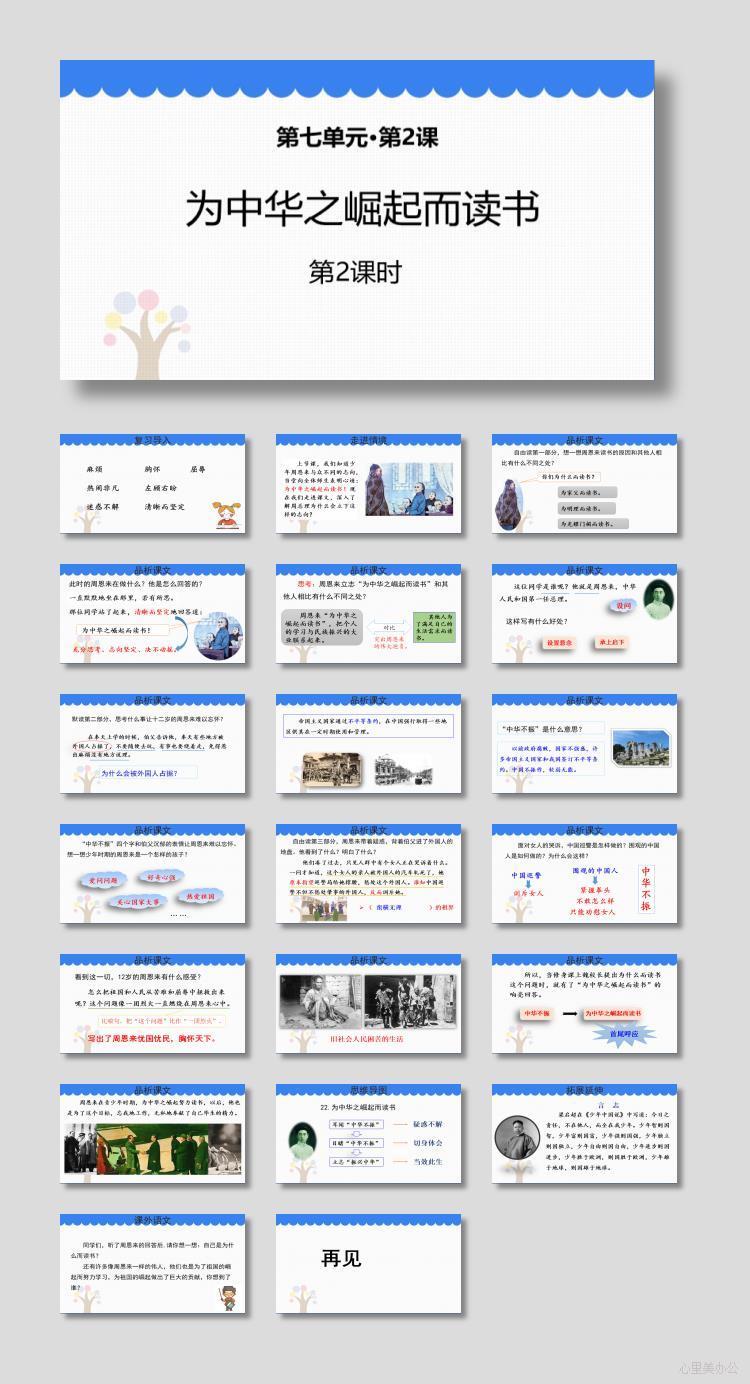 为中华之崛起而读书PPT精品课件第2课时下载到电脑里面,请使用Microsoft Office 2010或wps2016以上版本 等相关软件打开,作品中主体文字及图片、音频、视频可替换修改,文字修改可直接点击文本框进行编辑,图片更改可选中图片后单击鼠标右键选择更换图片,也可根据自身需求增加和删除作品中的内容文本。