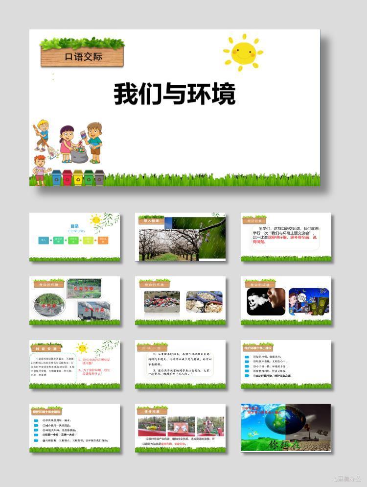 我们与环境PPT教学课件下载到电脑里面,请使用Microsoft Office 2010或wps2016以上版本 等相关软件打开,作品中主体文字及图片、音频、视频可替换修改,文字修改可直接点击文本框进行编辑,图片更改可选中图片后单击鼠标右键选择更换图片,也可根据自身需求增加和删除作品中的内容文本。