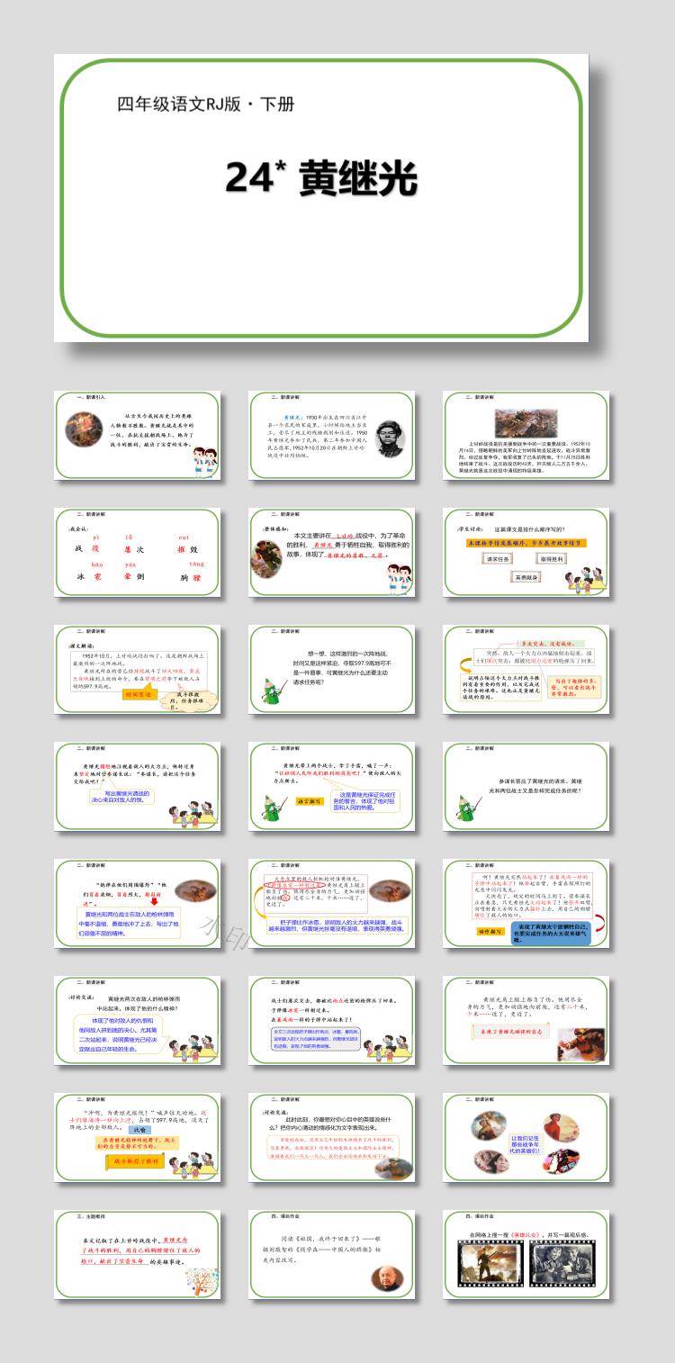 黄继光PPT优秀课件下载到电脑里面,请使用Microsoft Office 2010或wps2016以上版本 等相关软件打开,作品中主体文字及图片、音频、视频可替换修改,文字修改可直接点击文本框进行编辑,图片更改可选中图片后单击鼠标右键选择更换图片,也可根据自身需求增加和删除作品中的内容文本。