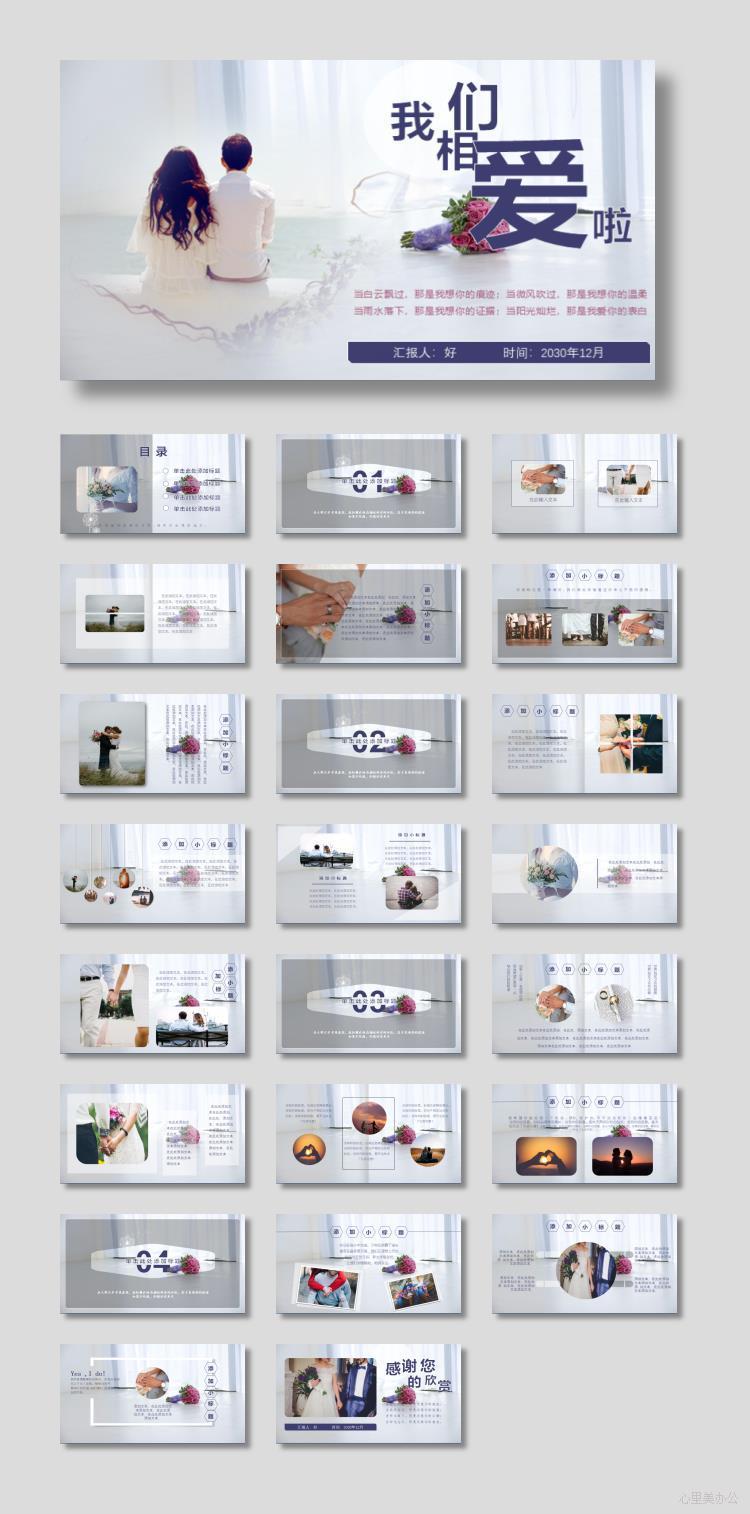 我们相爱了情人节告白PPT模板下载到电脑里面,请使用Microsoft Office 2010上版本软件打开编辑修改(其它软件打开可能出现文件不能正常编辑或效果消失),作品中主体文字、图片、视频、音频可替换修改,文字修改可直接点击文本框进行编辑,图片更改可选中图片后单击鼠标右键选择更换图片,也可根据自身需求增加和删除作品中的内容文本。