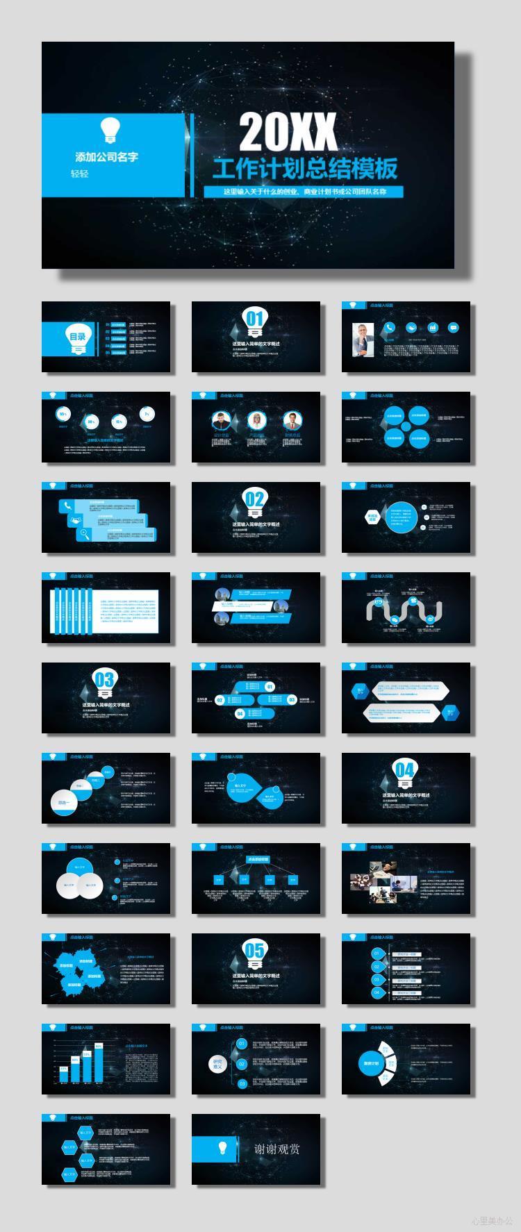 蓝色工作计划工作总结PPT模板下载到电脑里面,请使用Microsoft Office 2010上版本软件打开编辑修改(其它软件打开可能出现文件不能正常编辑或效果消失),作品中主体文字、图片、视频、音频可替换修改,文字修改可直接点击文本框进行编辑,图片更改可选中图片后单击鼠标右键选择更换图片,也可根据自身需求增加和删除作品中的内容文本。