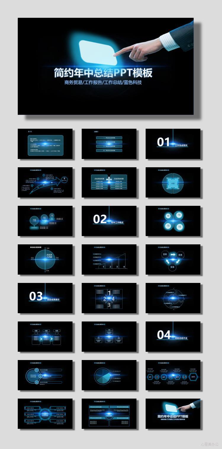 蓝色科技感的年中工作总结PPT模板下载下载到电脑里面,请使用Microsoft Office 2010上版本软件打开编辑修改(其它软件打开可能出现文件不能正常编辑或效果消失),作品中主体文字、图片、视频、音频可替换修改,文字修改可直接点击文本框进行编辑,图片更改可选中图片后单击鼠标右键选择更换图片,也可根据自身需求增加和删除作品中的内容文本。