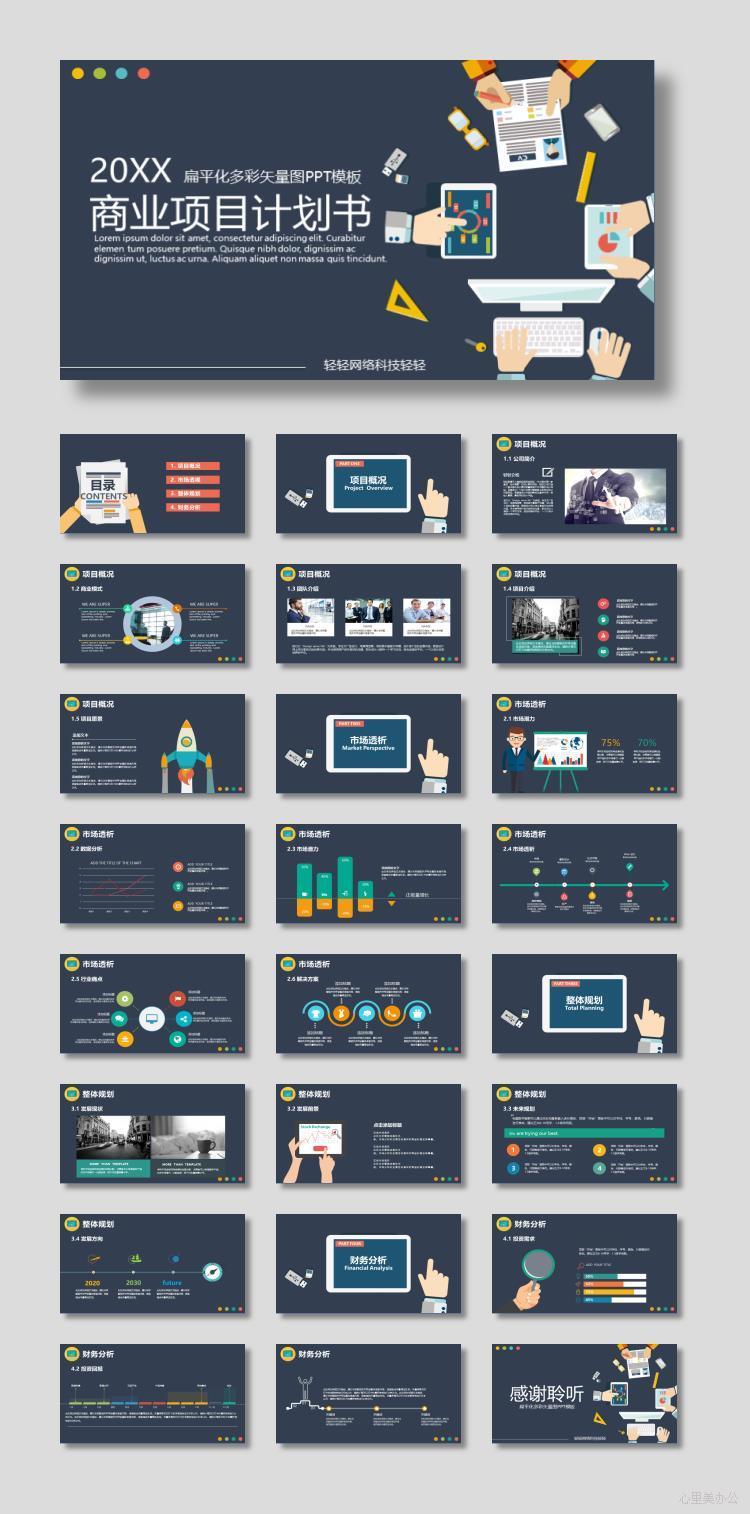 彩色矢量扁平化办公背景的商业计划书PPT模板