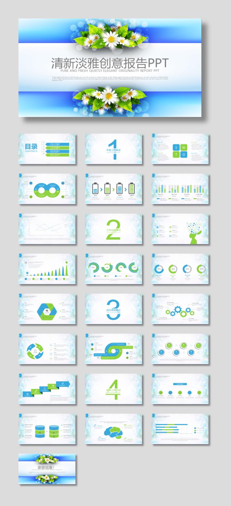 精致鲜花装饰的工作报告PPT模板下载到电脑里面,请使用Microsoft Office 2010上版本软件打开编辑修改(其它软件打开可能出现文件不能正常编辑或效果消失),作品中主体文字、图片、视频、音频可替换修改,文字修改可直接点击文本框进行编辑,图片更改可选中图片后单击鼠标右键选择更换图片,也可根据自身需求增加和删除作品中的内容文本。