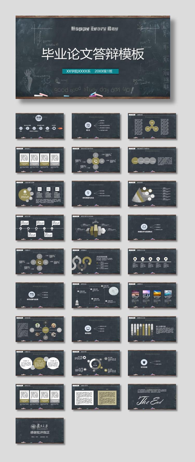 精致黑板粉笔字背景的毕业论文答辩PPT模板下载到电脑里面,请使用Microsoft Office 2010上版本软件打开编辑修改(其它软件打开可能出现文件不能正常编辑或效果消失),作品中主体文字、图片、视频、音频可替换修改,文字修改可直接点击文本框进行编辑,图片更改可选中图片后单击鼠标右键选择更换图片,也可根据自身需求增加和删除作品中的内容文本。