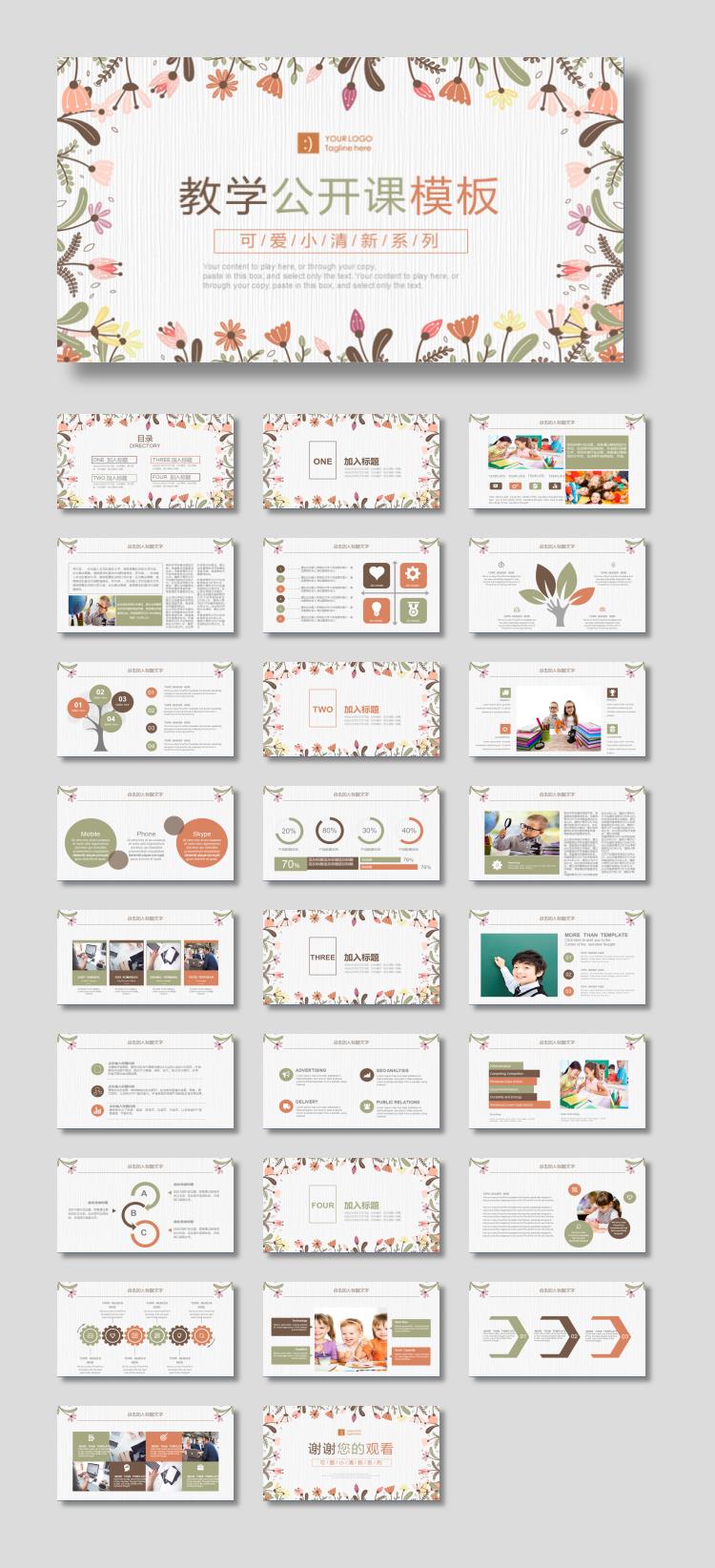 暖色卡通花卉公开课PPT模板免费下载 下载到电脑上以后,请使用Microsoft Office2010软件以上版本打开,作品中主体文字及图片可替换修改,文字修改可直接点击文本框进行编辑,图片更改可选中图片后单击鼠标右键选择更换图片,也可根据自身需求增加和删除作品中的内容文本。