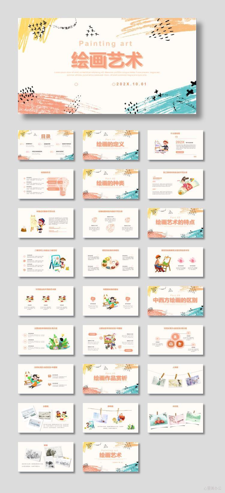 多彩蜡笔涂鸦背景绘画艺术美术培训PPT模板下载到电脑里面,请使用Microsoft Office 2010以上版本 等相关软件打开,作品中主体文字及图片可替换修改,文字修改可直接点击文本框进行编辑,图片更改可选中图片后单击鼠标右键选择更换图片,也可根据自身需求增加和删除作品中的内容文本。