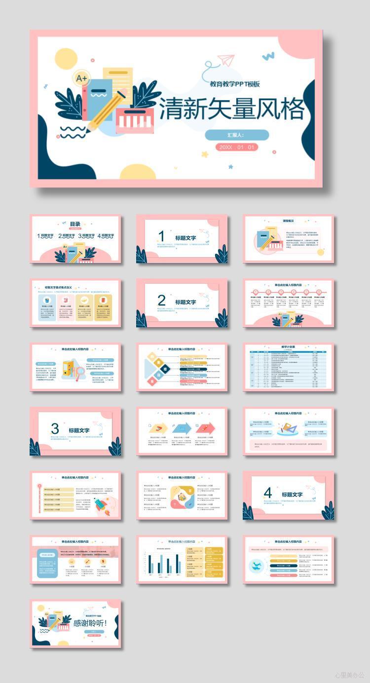 粉色矢量书籍文具背景教育教学PPT模板下载下载到电脑里面,请使用Microsoft Office 2010以上版本 等相关软件打开,作品中主体文字及图片可替换修改,文字修改可直接点击文本框进行编辑,图片更改可选中图片后单击鼠标右键选择更换图片,也可根据自身需求增加和删除作品中的内容文本。