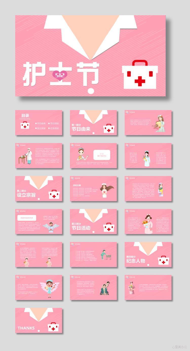 粉色扁平化护士领口背景国际护士节介绍PPT模板下载到电脑里面,请使用Microsoft Office 2010以上版本 等相关软件打开,作品中主体文字及图片可替换修改,文字修改可直接点击文本框进行编辑,图片更改可选中图片后单击鼠标右键选择更换图片,也可根据自身需求增加和删除作品中的内容文本。