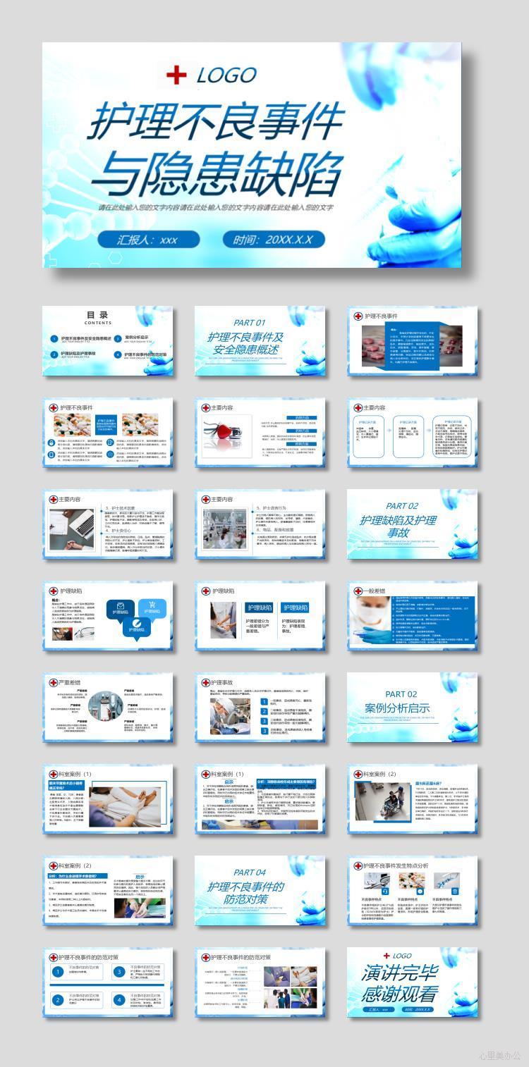 护理不良事件与隐患缺陷培训PPT课件下载到电脑里面,请使用Microsoft Office 2010以上版本 等相关软件打开,作品中主体文字及图片可替换修改,文字修改可直接点击文本框进行编辑,图片更改可选中图片后单击鼠标右键选择更换图片,也可根据自身需求增加和删除作品中的内容文本。