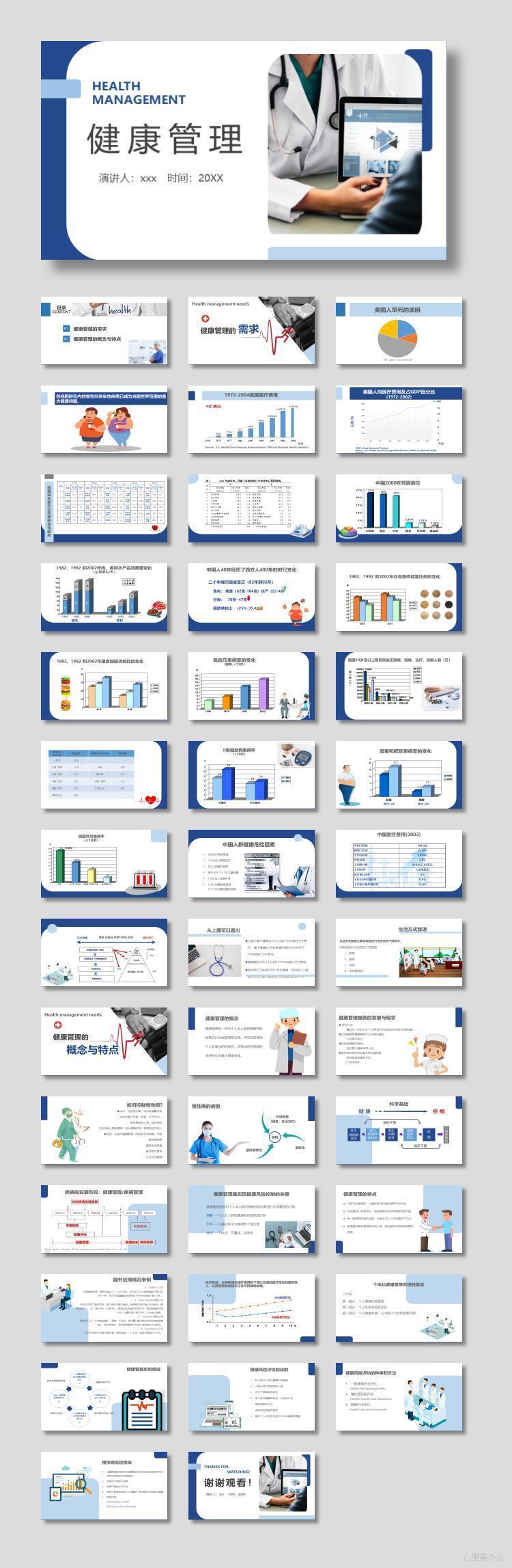 健康管理主题PPT模板下载到电脑里面,请使用Microsoft Office 2010以上版本 等相关软件打开,作品中主体文字及图片可替换修改,文字修改可直接点击文本框进行编辑,图片更改可选中图片后单击鼠标右键选择更换图片,也可根据自身需求增加和删除作品中的内容文本。