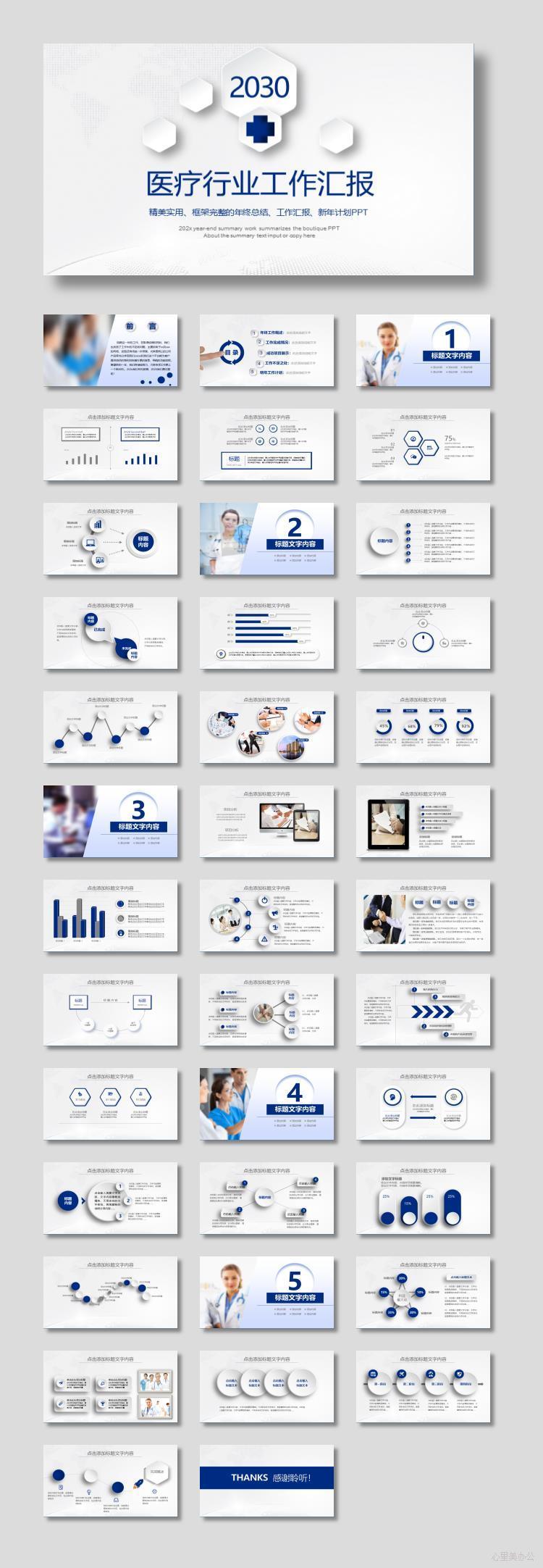 蓝色微立体医疗行业工作总结汇报PPT模板下载
