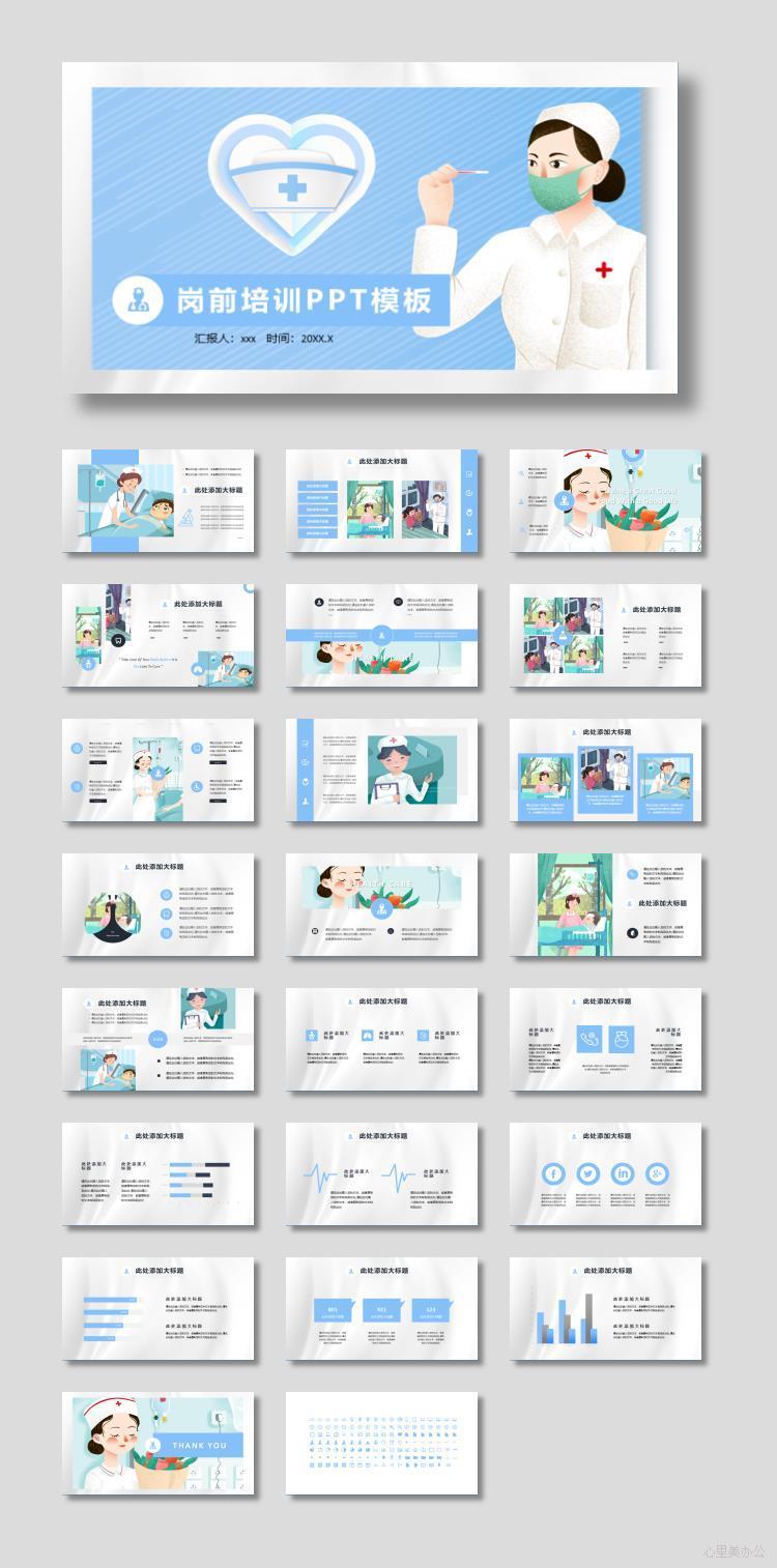 蓝色医疗护士岗前培训PPT模板下载下载到电脑里面,请使用Microsoft Office 2010以上版本 等相关软件打开,作品中主体文字及图片可替换修改,文字修改可直接点击文本框进行编辑,图片更改可选中图片后单击鼠标右键选择更换图片,也可根据自身需求增加和删除作品中的内容文本。