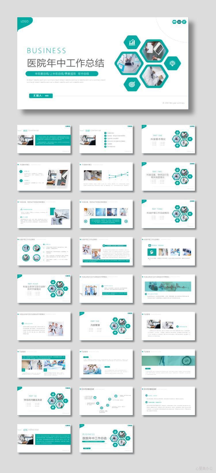 绿色简约医院年中工作总结PPT模板下载下载到电脑里面,请使用Microsoft Office 2010以上版本 等相关软件打开,作品中主体文字及图片可替换修改,文字修改可直接点击文本框进行编辑,图片更改可选中图片后单击鼠标右键选择更换图片,也可根据自身需求增加和删除作品中的内容文本。