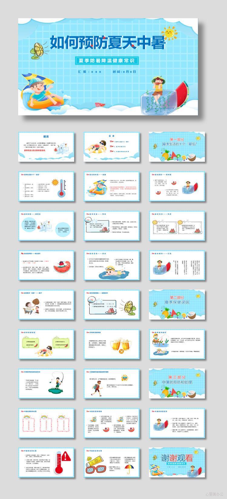 如何预防夏天中暑PPT模板下载下载到电脑里面,请使用Microsoft Office 2010以上版本 等相关软件打开,作品中主体文字及图片可替换修改,文字修改可直接点击文本框进行编辑,图片更改可选中图片后单击鼠标右键选择更换图片,也可根据自身需求增加和删除作品中的内容文本。