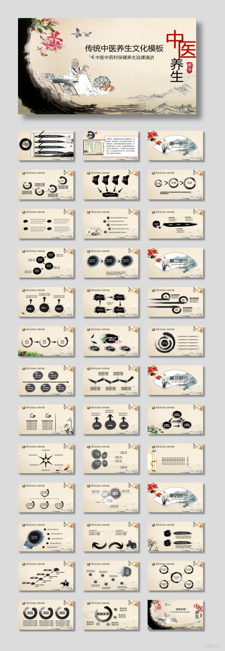 水墨古风中医养生主题PPT模板下载下载到电脑里面,请使用Microsoft Office 2010以上版本 等相关软件打开,作品中主体文字及图片可替换修改,文字修改可直接点击文本框进行编辑,图片更改可选中图片后单击鼠标右键选择更换图片,也可根据自身需求增加和删除作品中的内容文本。