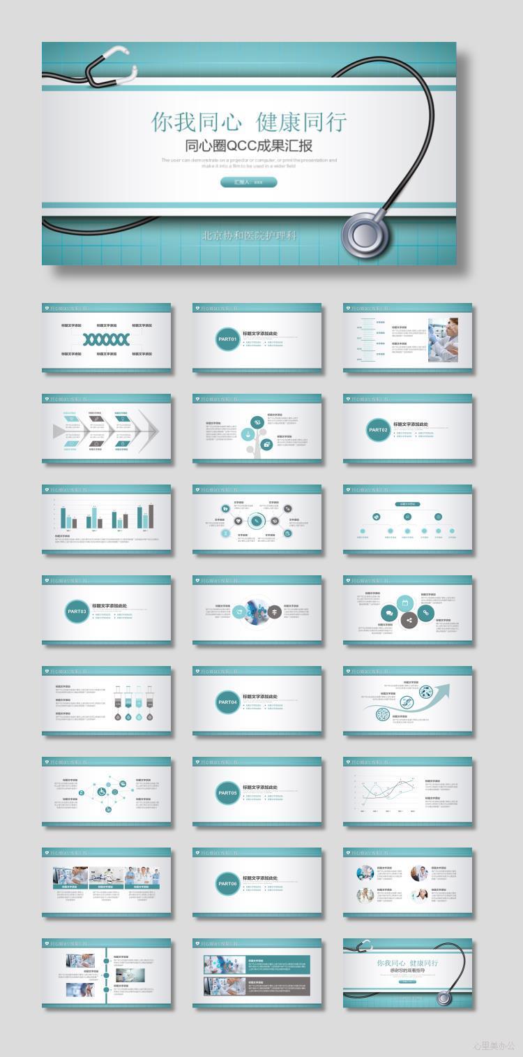 听诊器背景的品管圈QCC成果汇报PPT模板